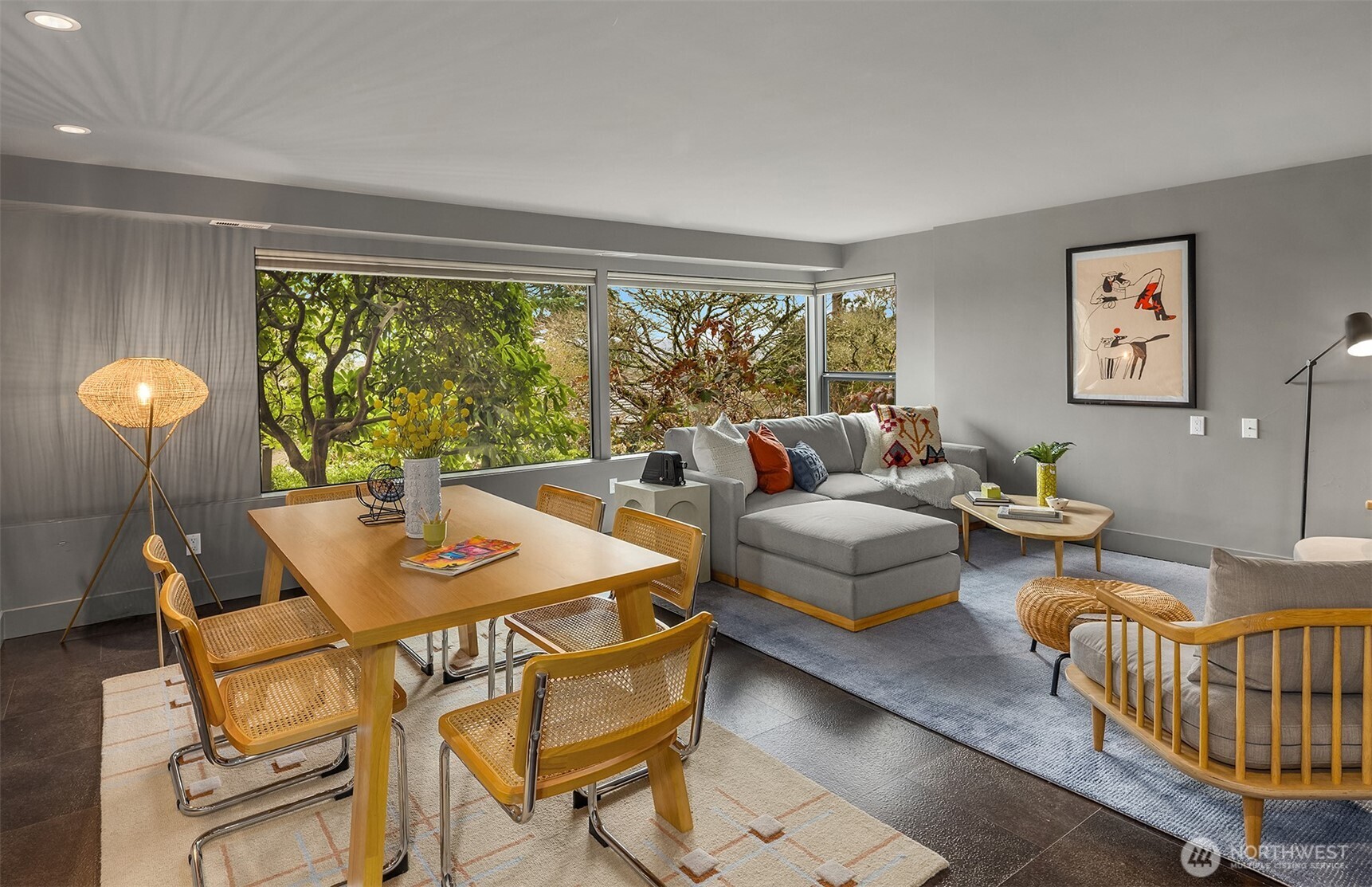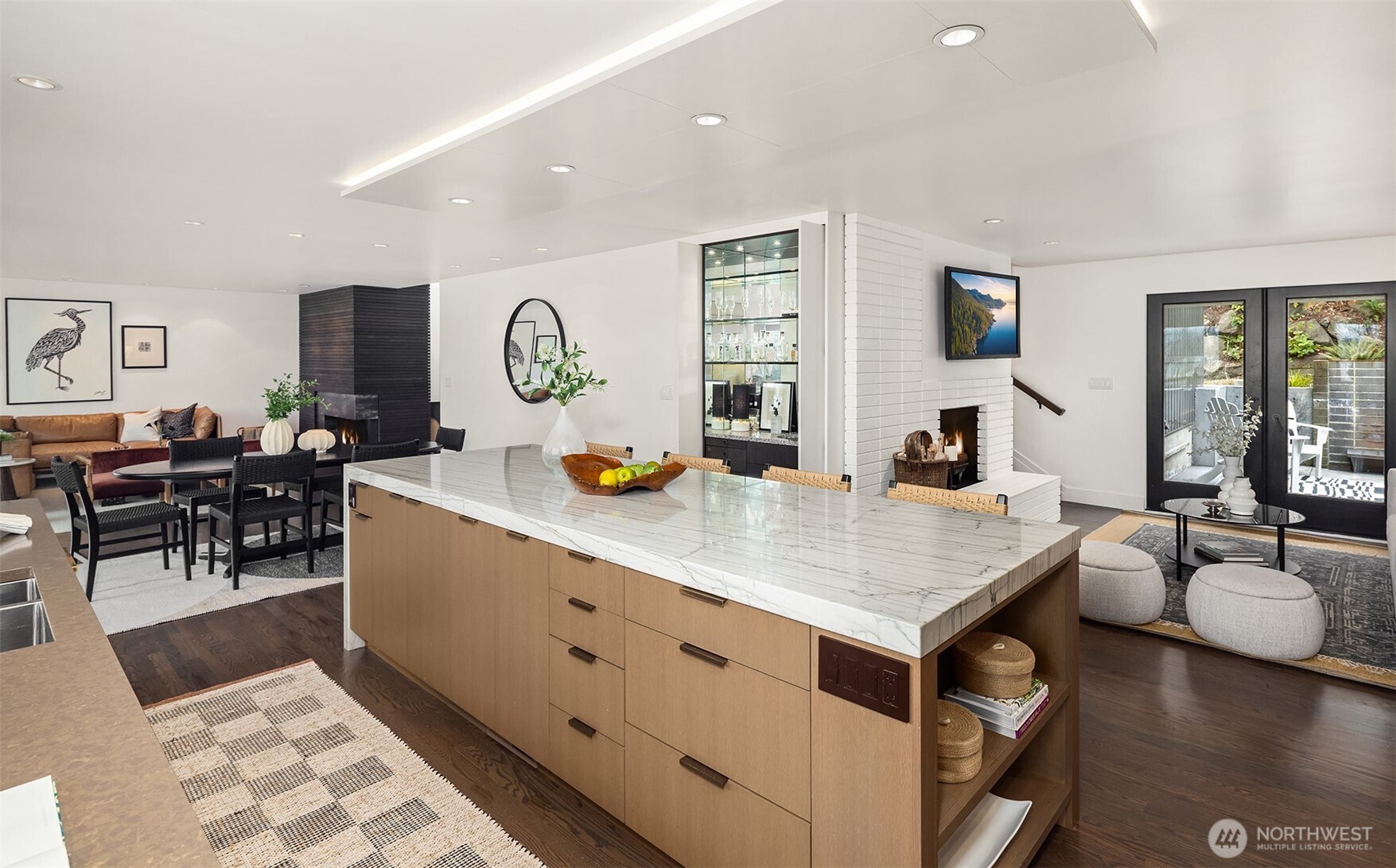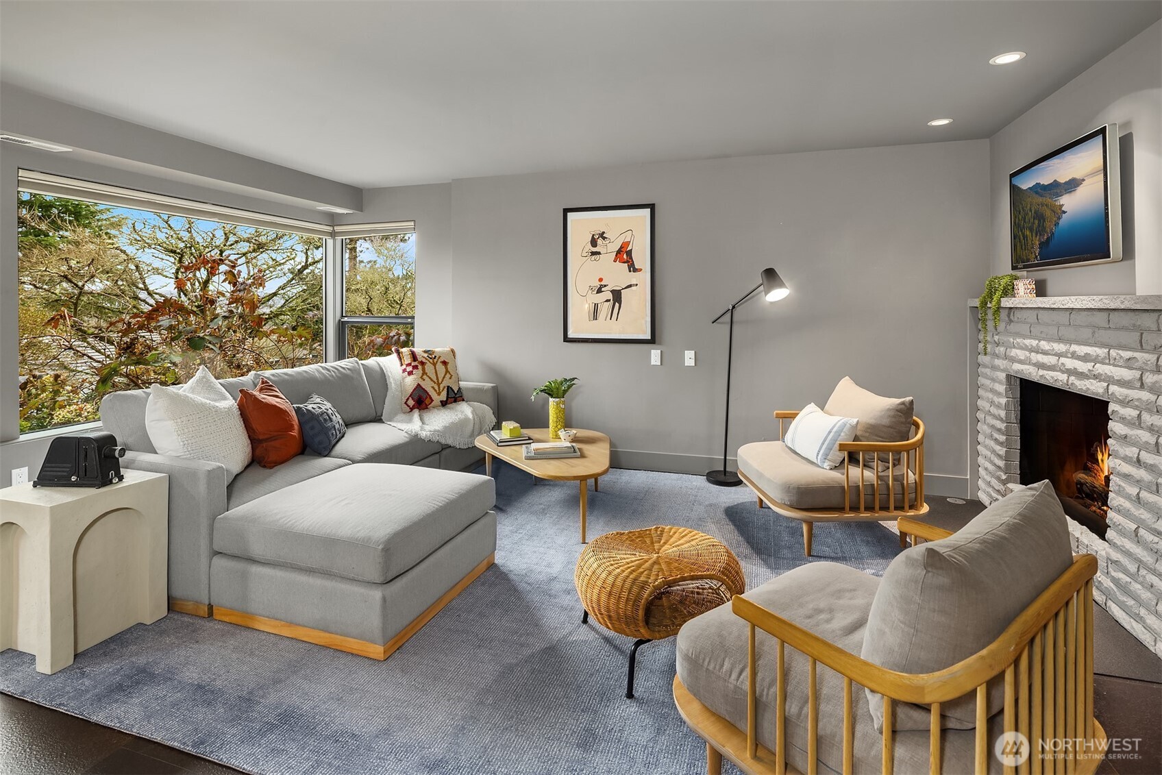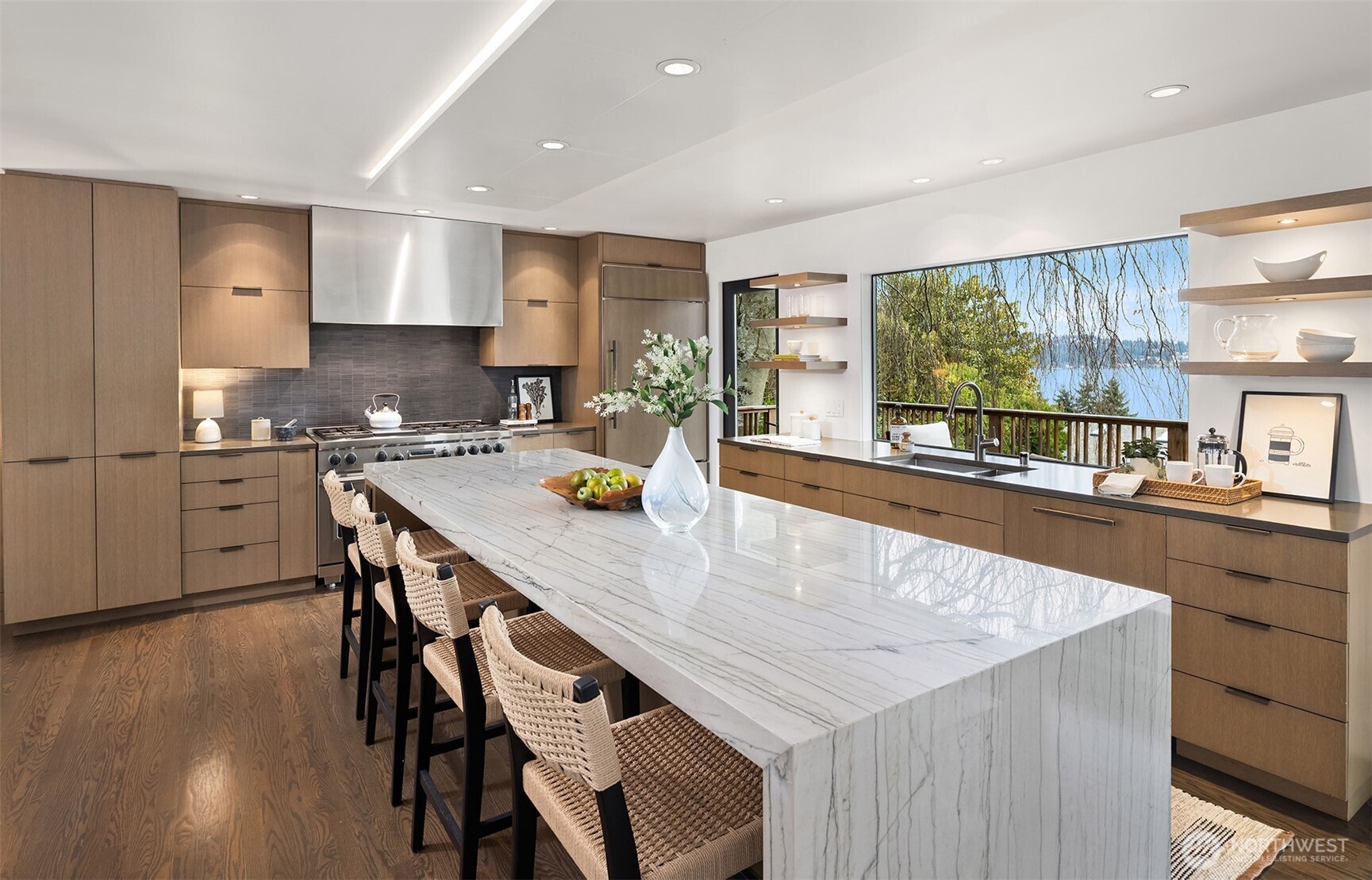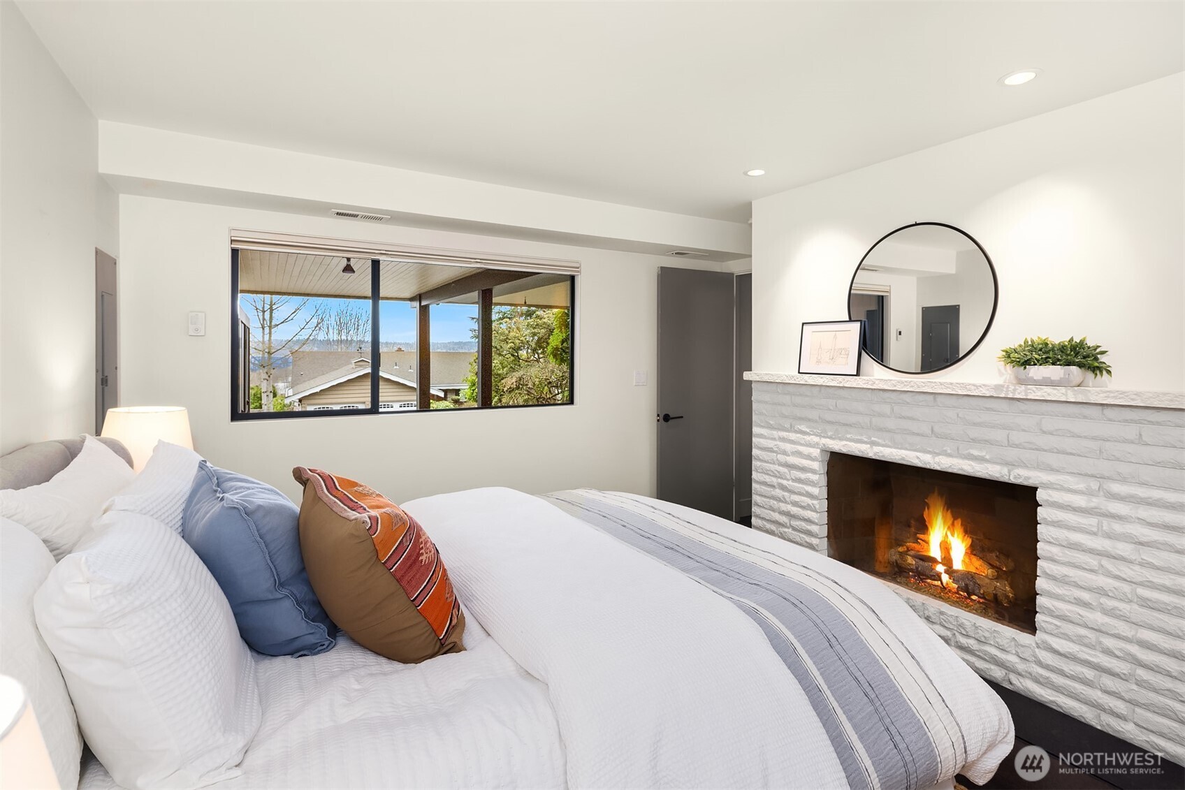 Perched above the water in the hillside like a private coastal retreat, this View Ridge stunner channels pure Laguna Beach cool--where walls of glass, warm woods, and endless blue views steal the show. Originally designed and built in 1964 and then renovated to the studs and expanded in 2012, this 4 Bed, 3 Bathrooms home reflects the clean lines and seamless indoor-outdoor philosophy that defines the timeless appeal of modernism. Every system is upgraded and finishes are elevated for contemporary living--creating a rare blend of mid-century pedigree and modern refinement. A sleek chef's kitchen w/waterfall marble island, custom cabinetry, flows effortlessly into airy dining and lounge spaces wrapped in panoramic windows. Four fireplaces create intimate moments throughout, while expansive French doors open to Ipe decks and patios tucked into lush, terraced landscaping. The primary suite is soft, serene & connected to a private outdoor retreat. Downstairs living spaces offer flexibility for media, guests or creative studio space. From sunrise coffee on the decks to golden hours entertaining, rooms are intentionally positioned to capture light, water, and Cascade mountains. Pro grade appliances--Wolf Oven/Range, Subzero Fridge. In floor heating in all bathrooms and lower level. New back patio, Gas BBQ hookup, French drains, and sprinklers. Fireplaces plumbed for gas, but burn real wood. New water heater in 2023.