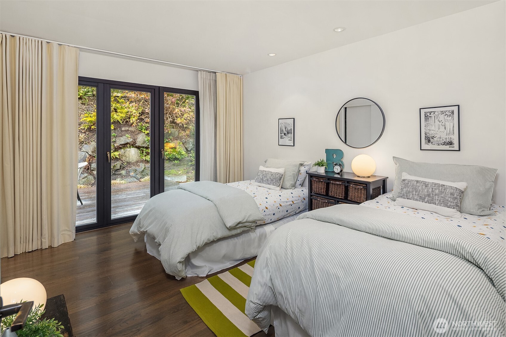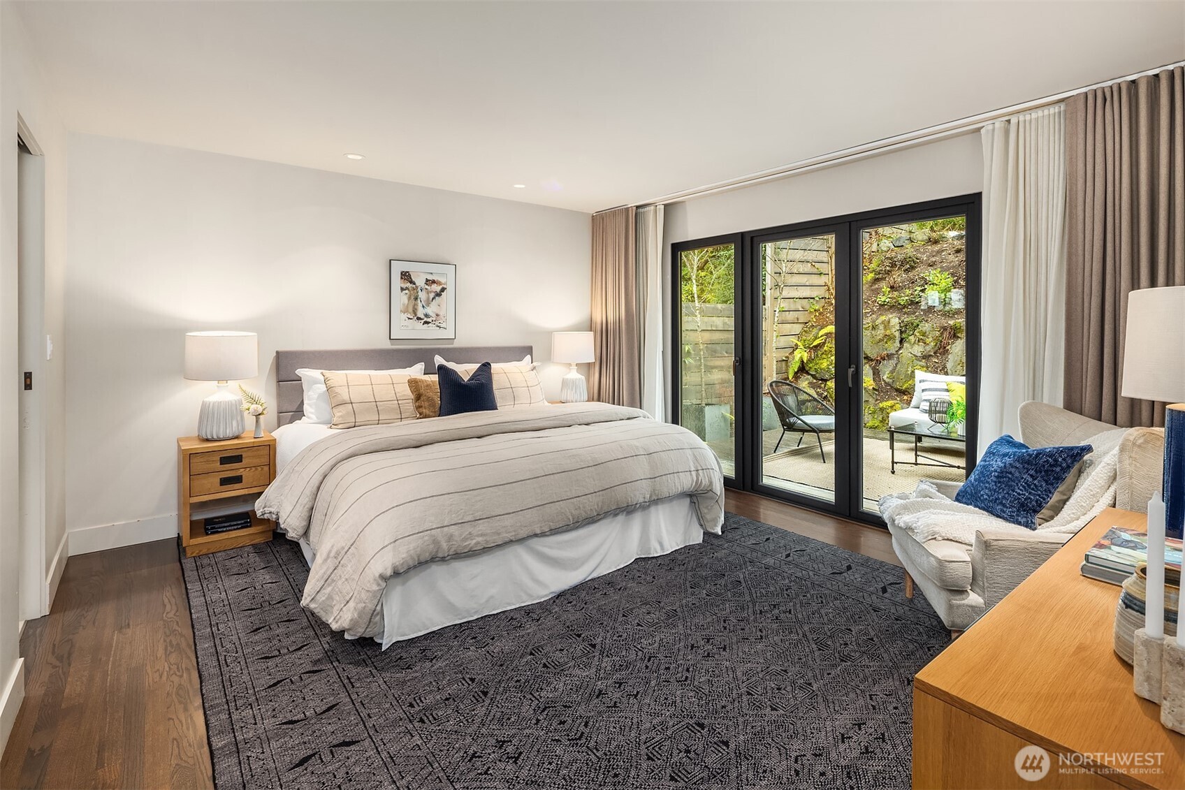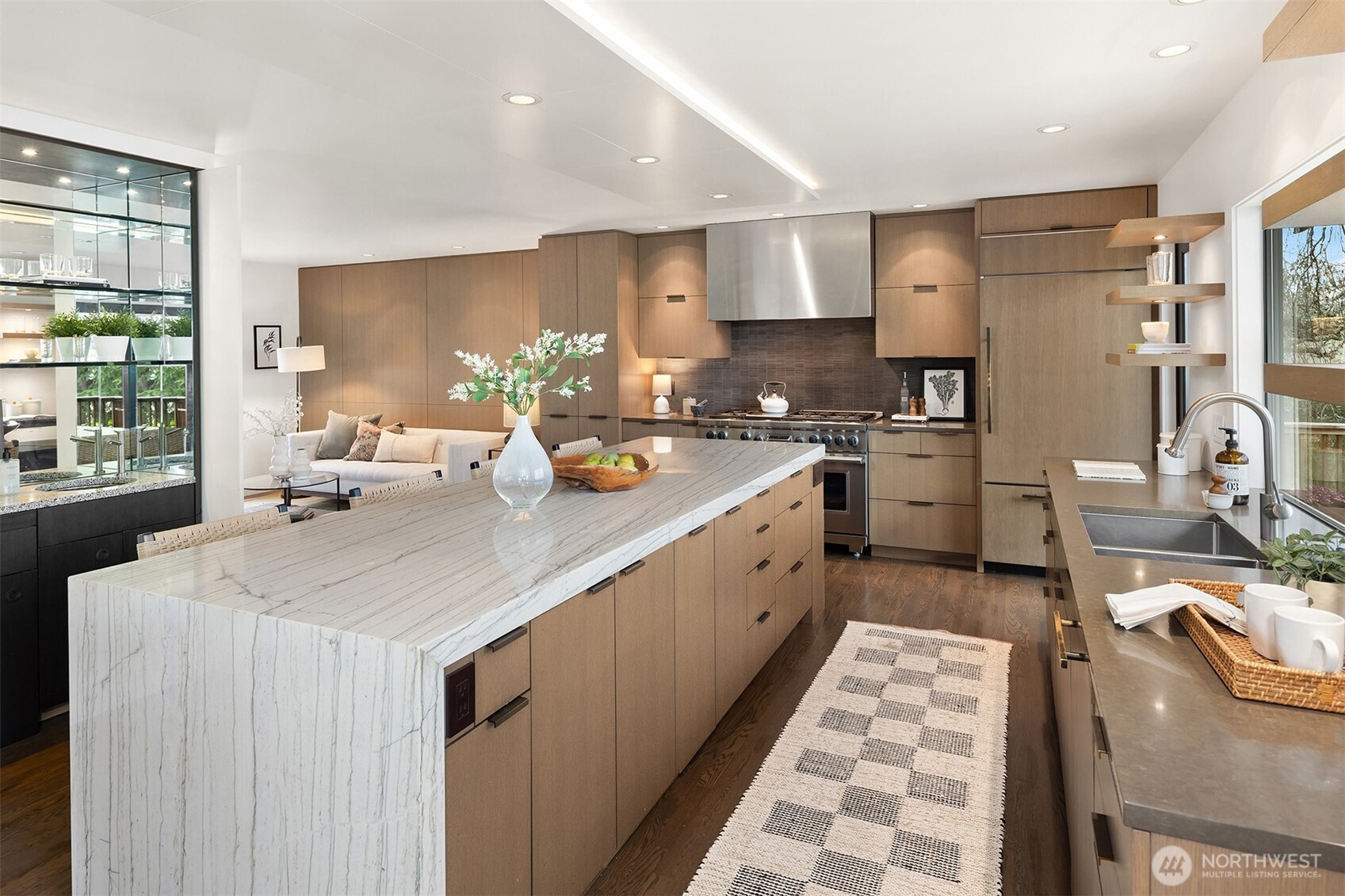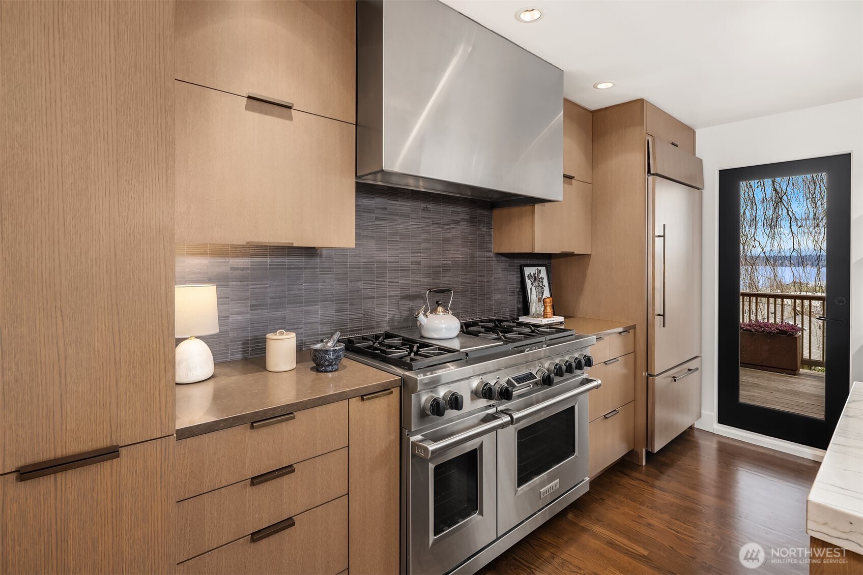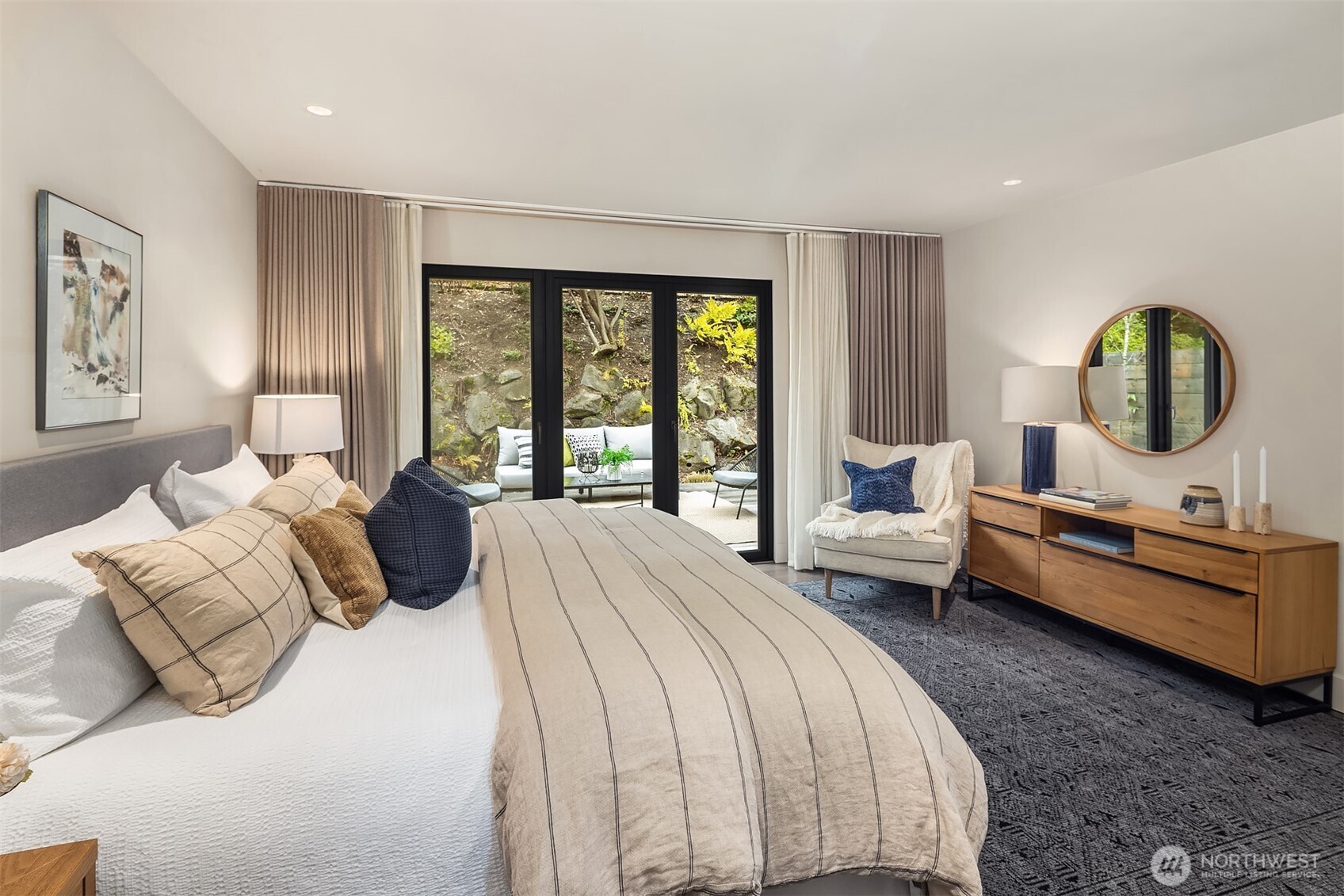 Perched above the water in the hillside like a private coastal retreat, this View Ridge stunner channels pure Laguna Beach cool--where walls of glass, warm woods, and endless blue views steal the show. Originally designed and built in 1964 and then renovated to the studs and expanded in 2012, this 4 Bed, 3 Bathrooms home reflects the clean lines and seamless indoor-outdoor philosophy that defines the timeless appeal of modernism. Every system is upgraded and finishes are elevated for contemporary living--creating a rare blend of mid-century pedigree and modern refinement. A sleek chef's kitchen w/waterfall marble island, custom cabinetry, flows effortlessly into airy dining and lounge spaces wrapped in panoramic windows. Four fireplaces create intimate moments throughout, while expansive French doors open to Ipe decks and patios tucked into lush, terraced landscaping. The primary suite is soft, serene & connected to a private outdoor retreat. Downstairs living spaces offer flexibility for media, guests or creative studio space. From sunrise coffee on the decks to golden hours entertaining, rooms are intentionally positioned to capture light, water, and Cascade mountains. Pro grade appliances--Wolf Oven/Range, Subzero Fridge. In floor heating in all bathrooms and lower level. New back patio, Gas BBQ hookup, French drains, and sprinklers. Fireplaces plumbed for gas, but burn real wood. New water heater in 2023.